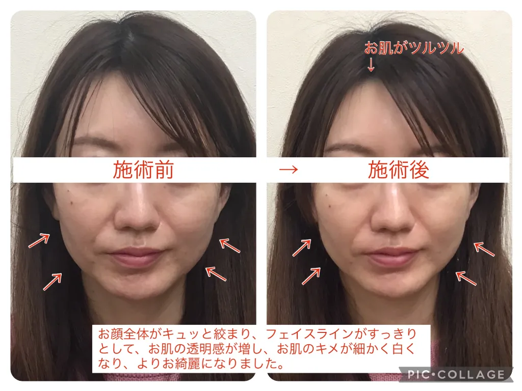 翌朝、鏡の近くで自分の顔を見たら左右の目の位置や頬やアゴのラインがすっきりしたように感じました。